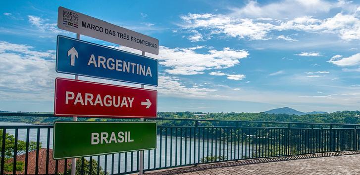 Em Foz do Iguaçu fica o marco brasileiro, instalado há 122 anos. Ele está pintado de verde e amarelo, marcando o nosso território.