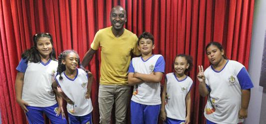 Professor João Carlos com os estudantes do clipe “Todos Contra a Dengue”