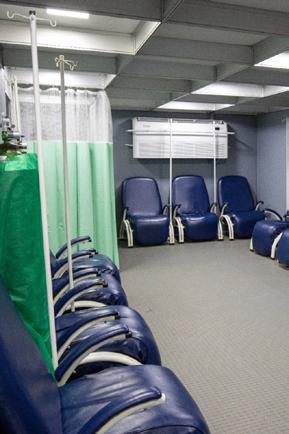 Todo o espaço é climatizado e conta com sala de espera, banheiros adaptados, setor de triagem e área de medicação com 15 poltronas e dois consultórios, além de um espaço para observação com dois leitos e farmácia com estoque interno. A equipe é composta por dois médicos por plantão, cinco enfermeiros durante o dia e quatro à noite.
