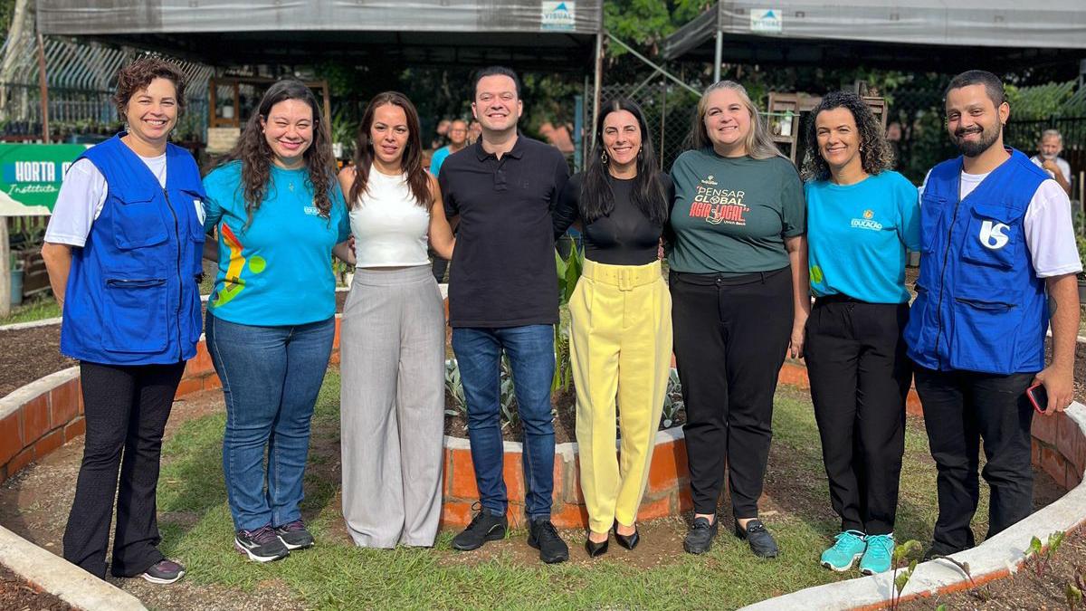 O ato de reabertura da horta contou com a presença dos secretários municipais Marcello Barbosa (Governo) e Maria Cristina Perpetuo (Educação), além de profissionais da educação, estudantes e repre-