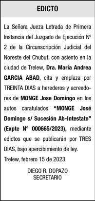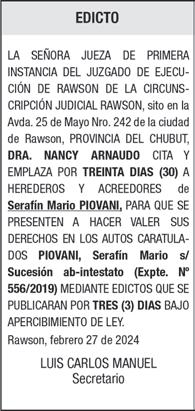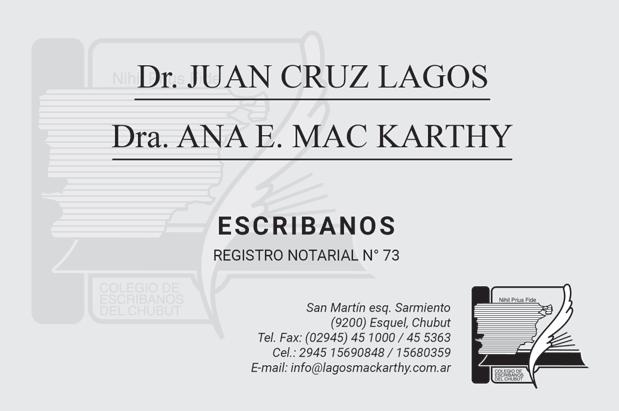 Domicilio legal: Yrigoyen 583 (9100) Trelew, provincia de Chubut.