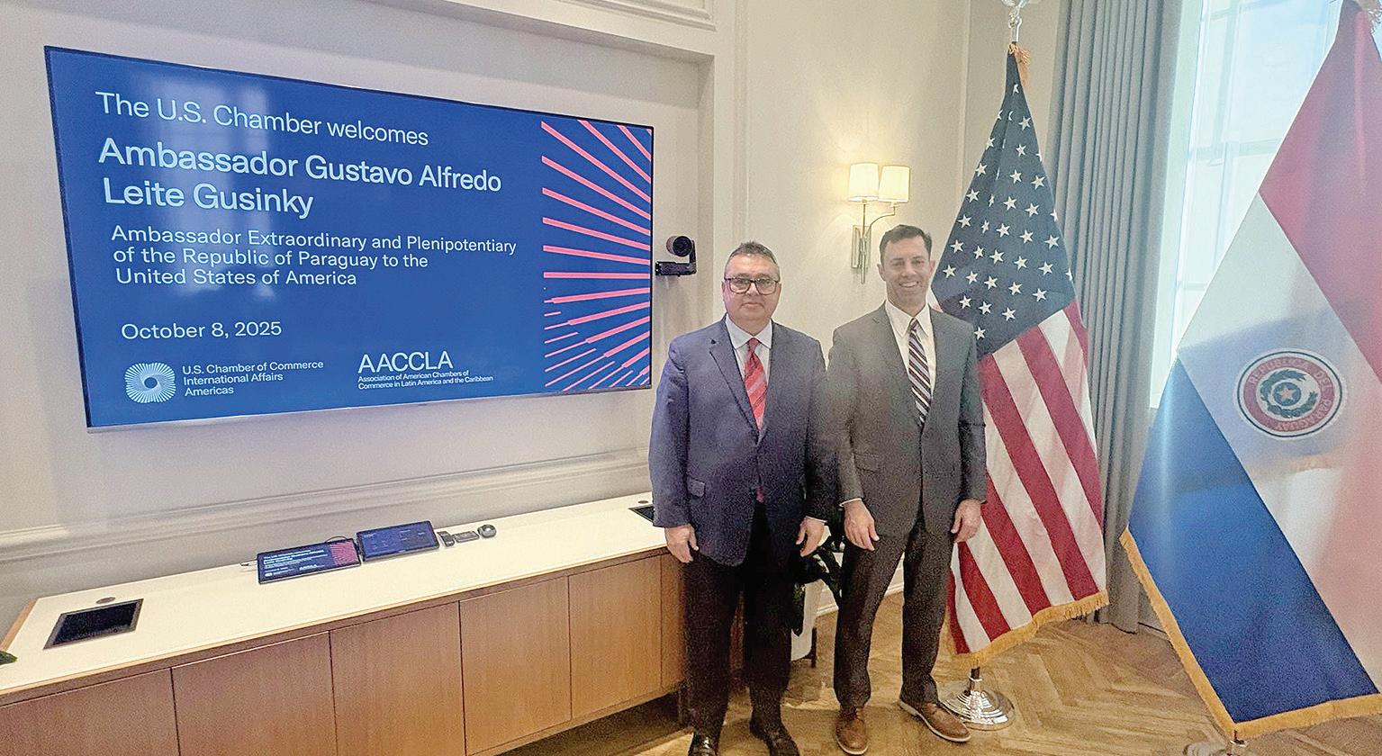 El embajador paraguayo ante el Gobierno de los Estados Unidos, Gustavo Leite, informó sobre su visita a Neil Herrington, vicepresidente para las Américas de la Cámara de Comercio del Gobierno norteamericano.