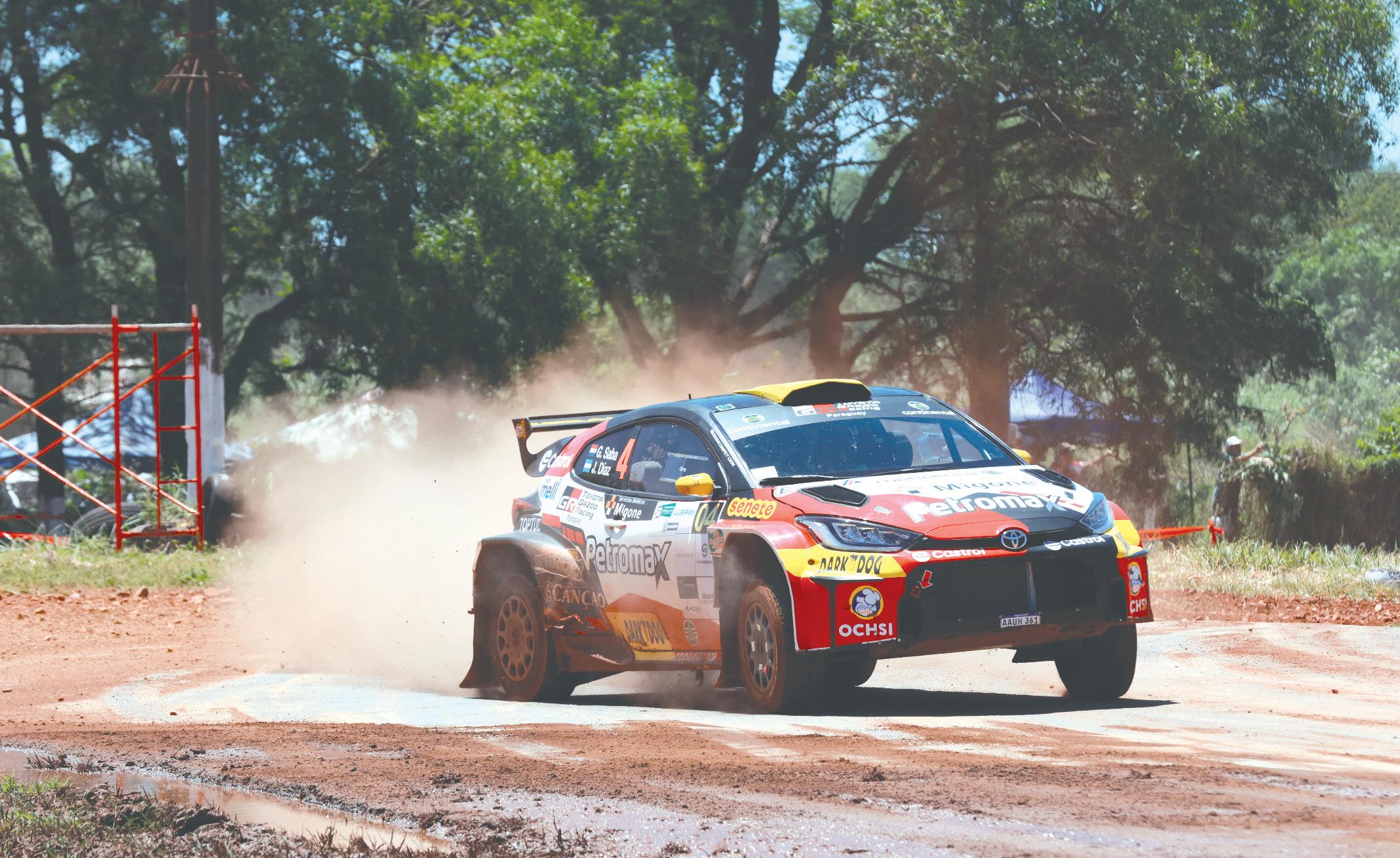 En la categoría principal al mando del Toyota GR Yaris Rally2, larga primero Gustavo Saba, quien logró el mejor tiempo (06:42,14) de la clasificación del domingo en el autódromo Aratirí de Capiatá.
