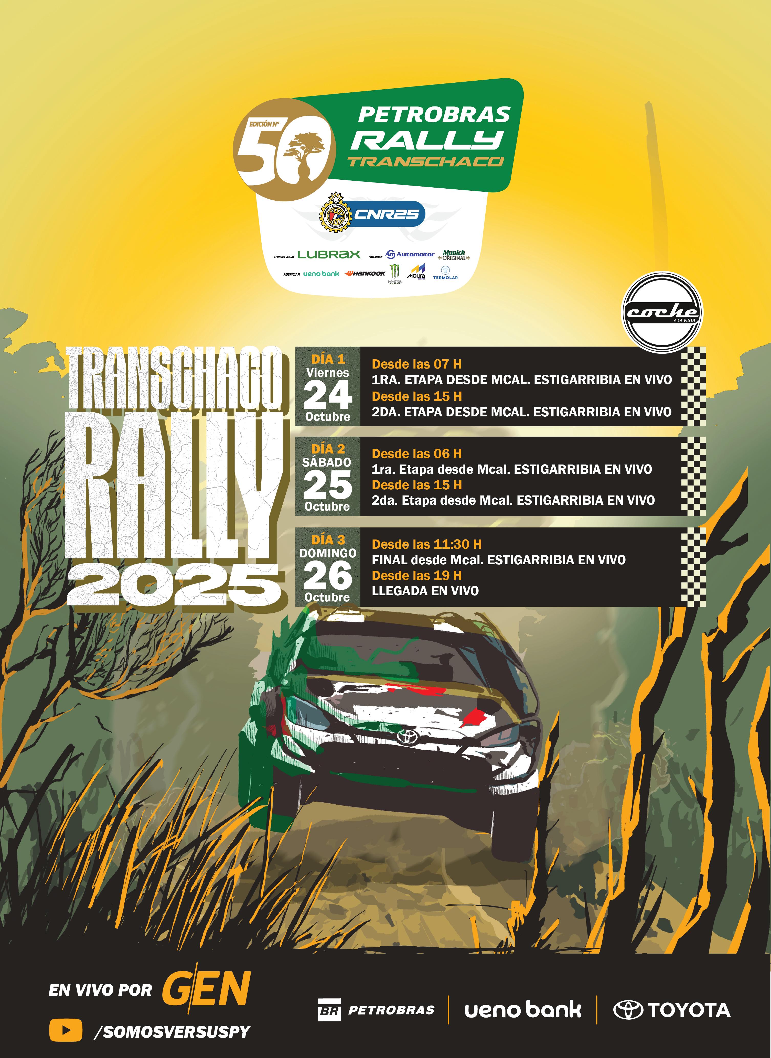 Se pone en marcha este viernes en territorio chaqueño la histórica edición 50 del Transchaco Rally con la prueba especial 3, entre Cañada Elisa y Cuenca Lechera, a partir de las 8:00.