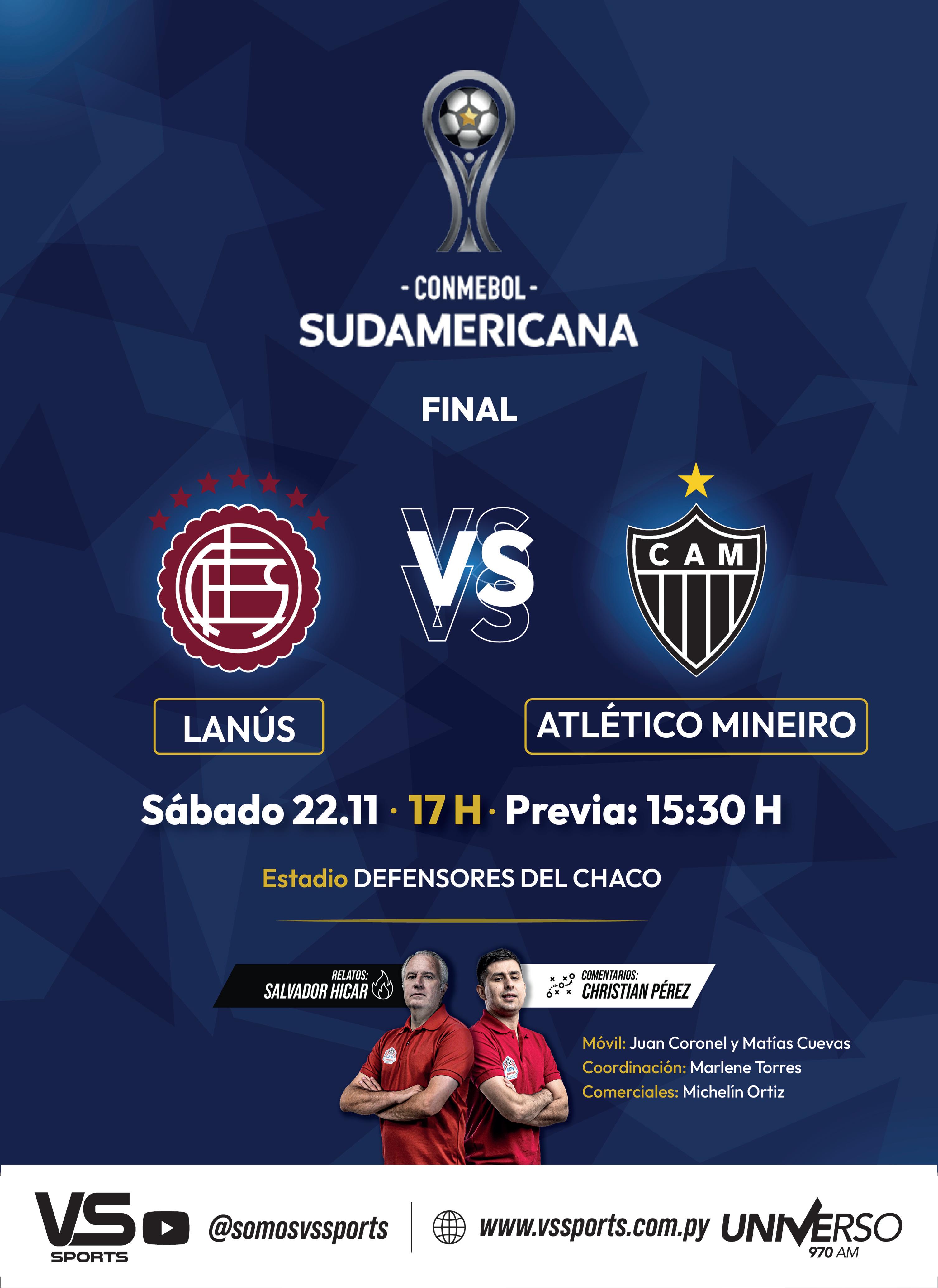 La gran final de la Copa Sudamericana vuelve a tener a Asunción como sede y ya desde ayer se vive toda la emoción en las calles. Lanús, de Argentina, y Atlético Mineiro, de Brasil, definen hoy al campeón en el Defensores del Chaco.