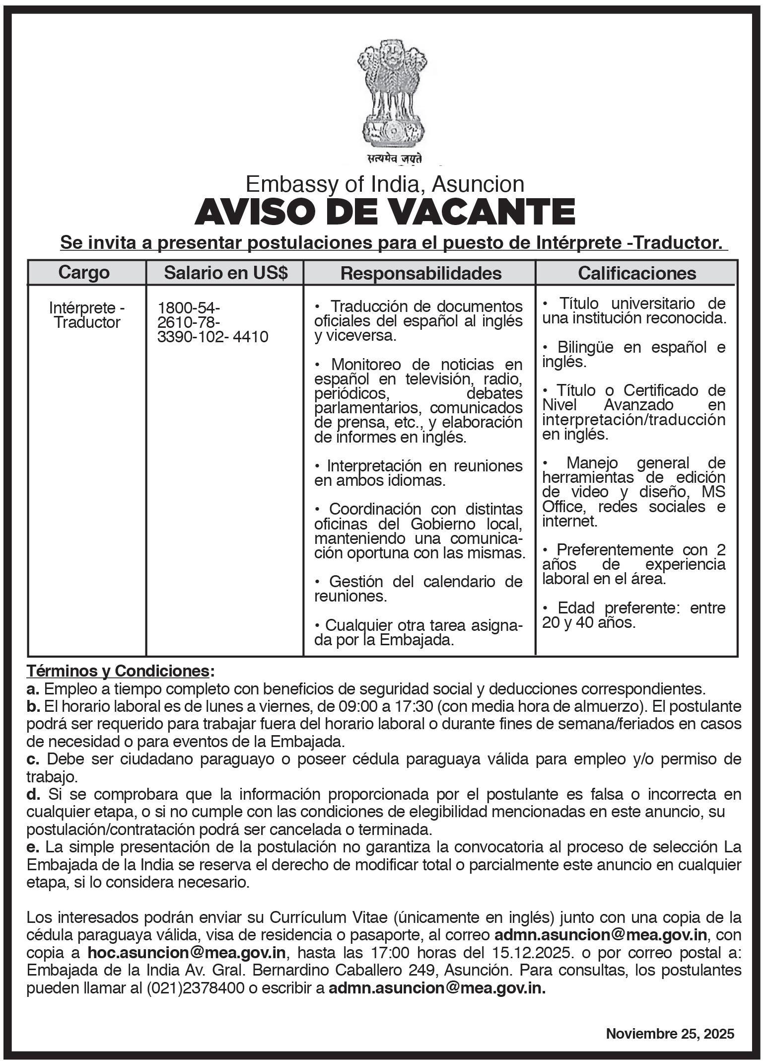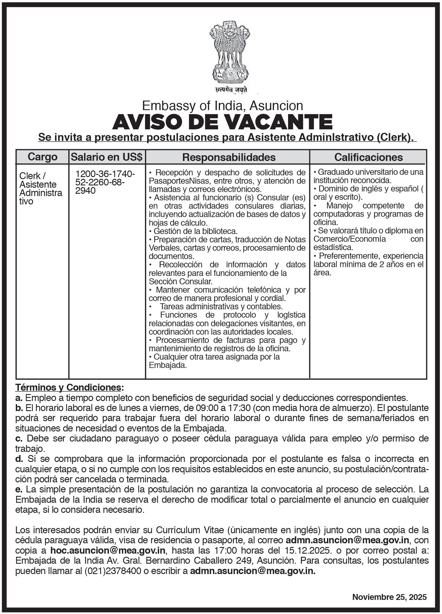 MIÉRCOLES 26 DE NOVIEMBRE DE 2025