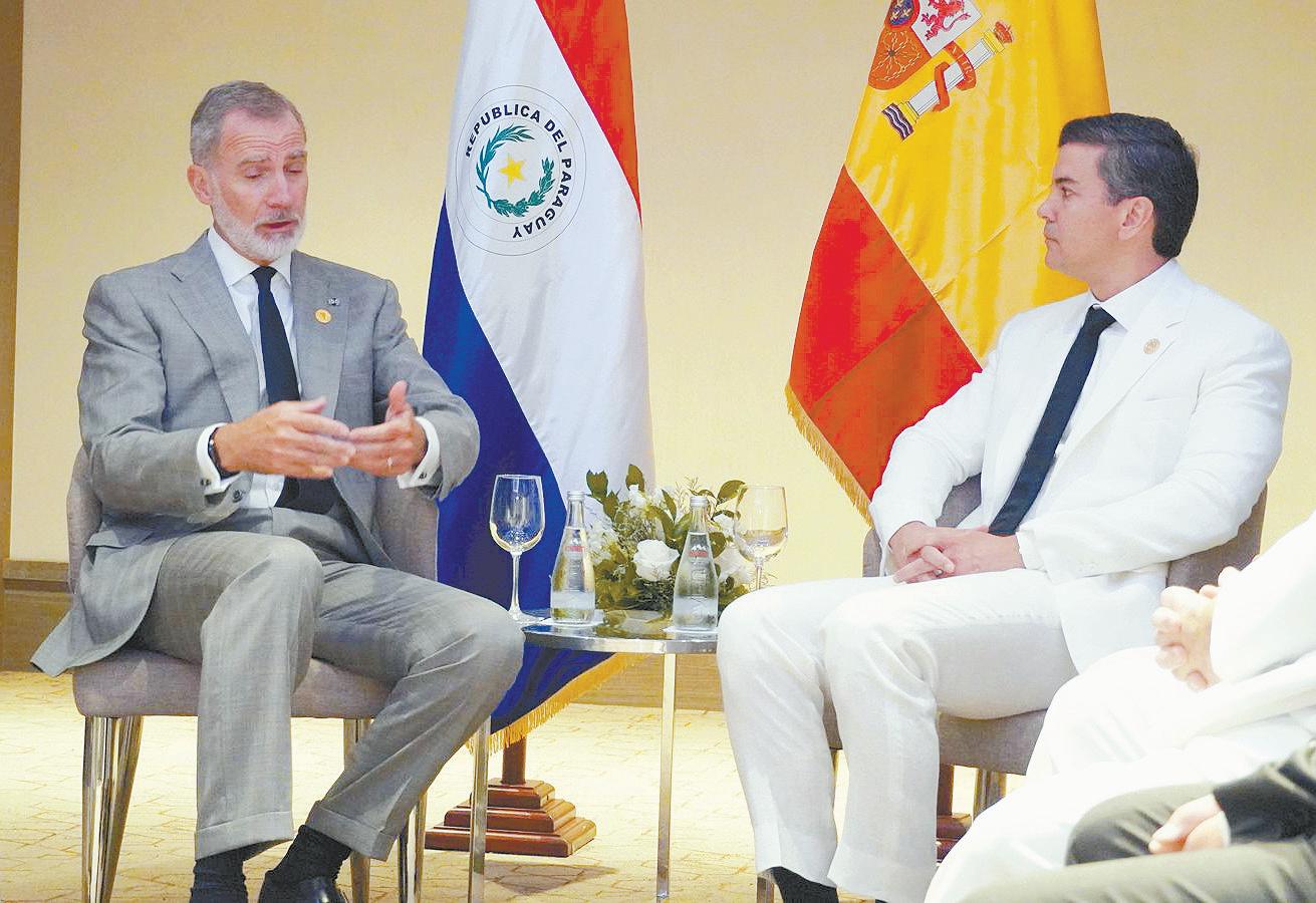 El presidente Santiago Peña se reunió con el rey Felipe VI de España tras asistir a la ceremonia de juramento de Luis Abinader como presidente de República Dominicana. Luego, con autoridades de Uruguay, Argentina, Panamá, Guatemala y otros países expresaron el rechazo a los actos antidemocráticos que se dan en Venezuela. P. 3