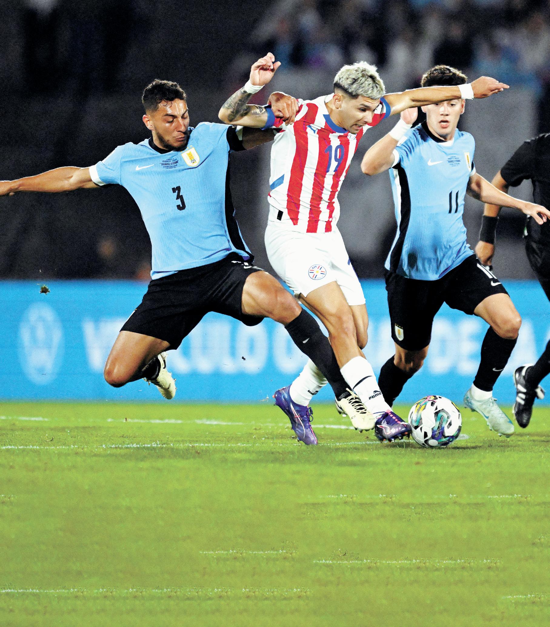 hizo vibrar uno de los palos. Enciso, con aciertos y errores, fue picante e importante para generar zozobra en la última línea de Uruguay.
