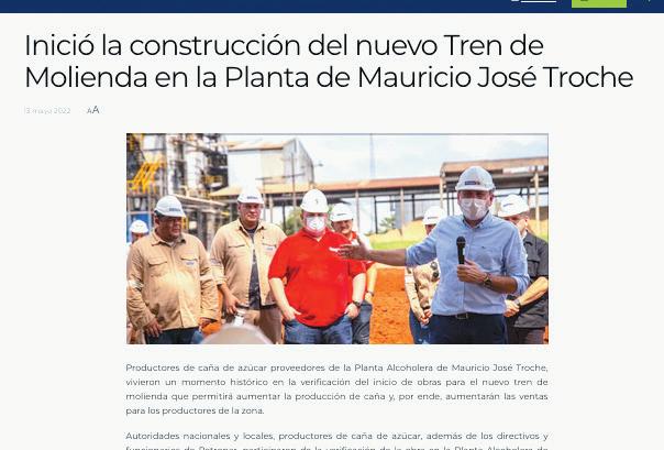 En mayo del 2022, Lichi y sus colaboradores hablaban de un “momento histórico”, anun ciando el inicio de la obra para el nuevo tren de molienda en Troche. En junio de este año, los medios estatales también divulgaban gacetillas sobre la visita que realizó el presi dente de la República, Mario Abdo Benítez, a la planta de Troche para verificar los tra bajos. Todo fue show, hasta