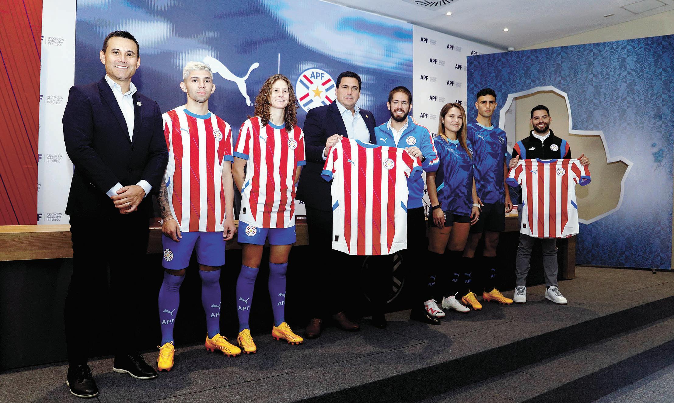 Julio Enciso, Paola Genes, Camila Barboza y Kevin Parzajuk durante la presentación de las renovadas indumentarias