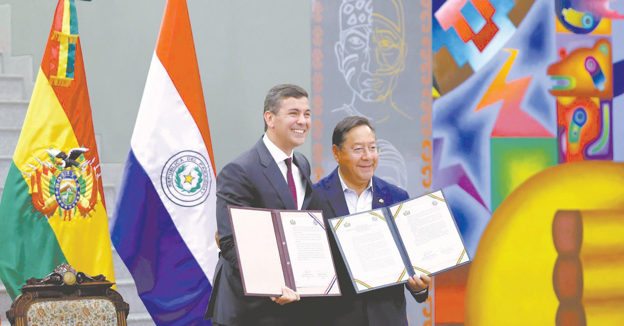 Los presidentes de Paraguay, Santiago Peña, y de Bolivia, Luis Arce, reafirmaron la voluntad de fortalecer la inversión para la cooperación en materia de infraestructura física y logística, con el objetivo de incrementar el tránsito y facilitar el comercio entre ambas naciones. P. 6