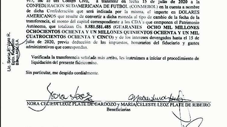 Respuesta de la Conmebol: La institución deportiva denunció, en una segunda oportunidad (año 2021), las operaciones de fideicomiso realizadas en el banco Atlas. En la primera denuncia (año 2017) se puso a disposición del Ministerio Público toda la información disponible y que abarca todas las operaciones de Leoz en Paraguay. En la segunda, se enfocó en Leoz y Atlas tras recibir información relevante.
