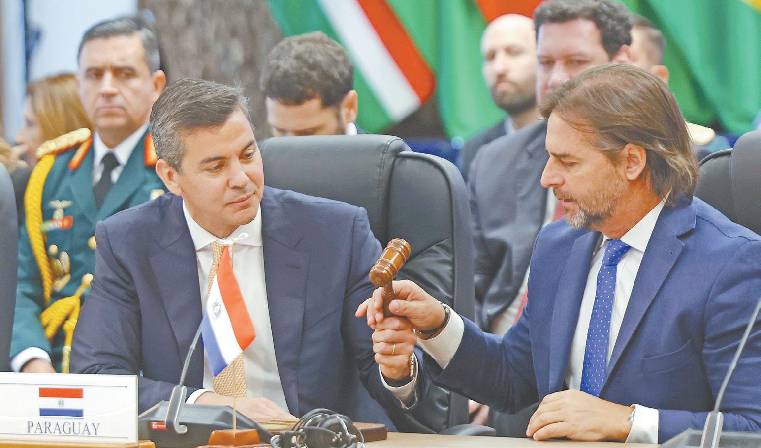 La cumbre n.° 64 del Mercado Común del Sur (Mercosur) fue el escenario en el que Santiago Peña entregó la presidencia pro tempore del bloque a su par uruguayo, Luis Lacalle Pou. En medio de la sesión de jefes de Estado, el mandatario paraguayo habló de los esfuerzos realizados bajo esta gestión en pos de la integración.