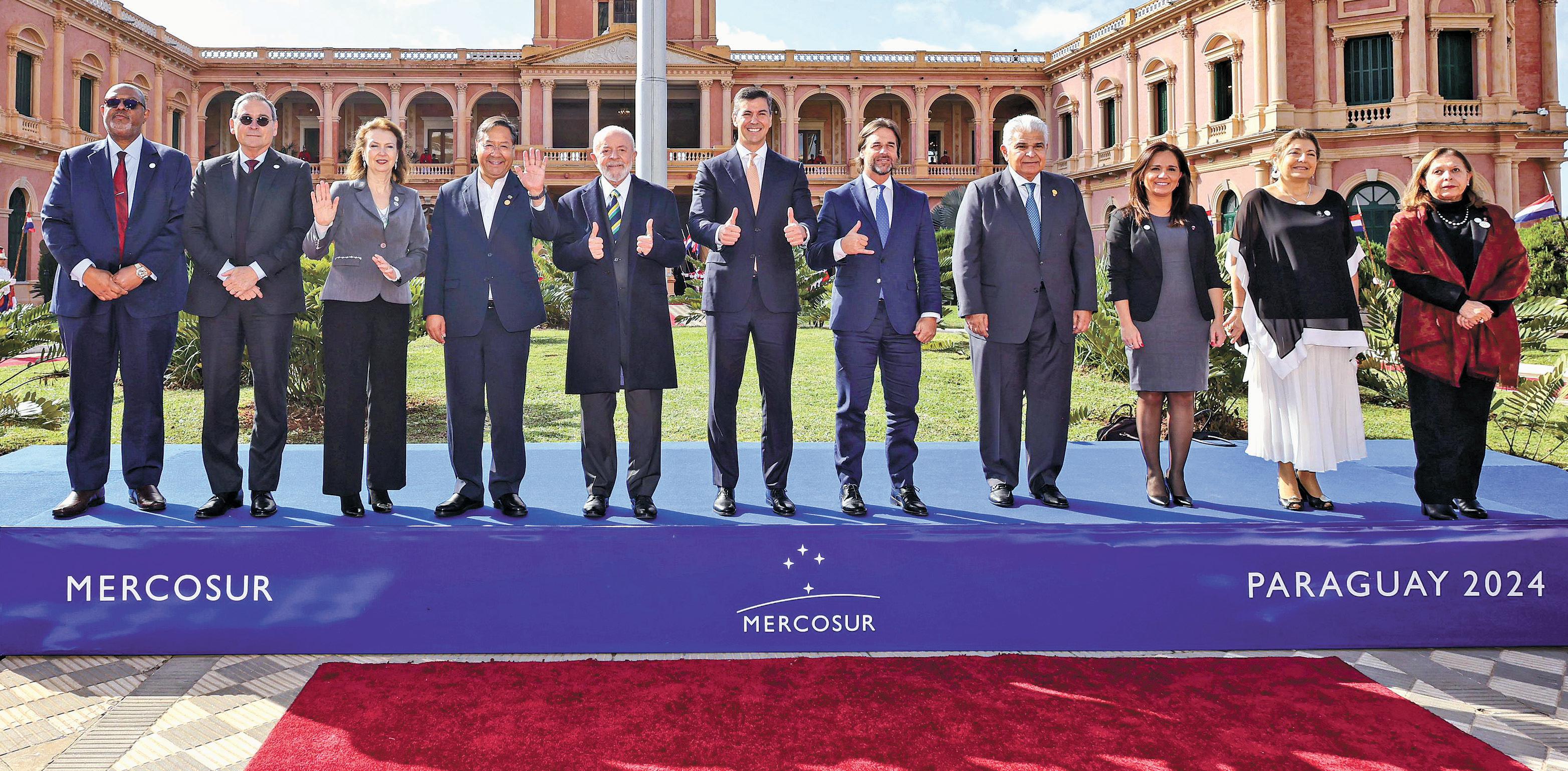 Culminó ayer la 64.ª Cumbre del Mercosur, con asistencia de los mandatarios de Brasil, Uruguay, Bolivia y Panamá, país invitado. El presidente Santiago Peña, anfitrión del evento, señaló que todavía hay mucho por mejorar y que se debe apuntar a una mayor integración, más allá de cualquier diferencia. La ausencia de Javier Milei fue criticada por Lacalle Pou. P. 2-3