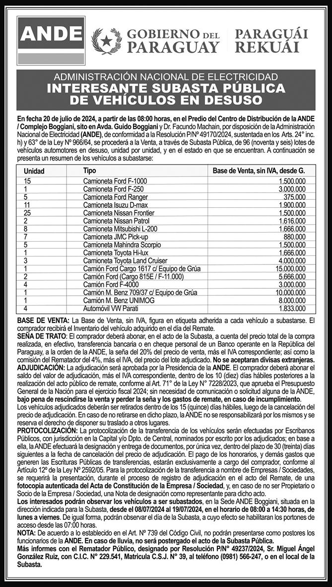 Todas las comercializadoras del mercado eléctrico se presentarán al concurso y para el mes de agosto ya estará prevista la apertura oficial de las ofertas. Medina manifestó que, por primera vez en la historia, Paraguay venderá energía en el mercado brasileño a través de la Ande.