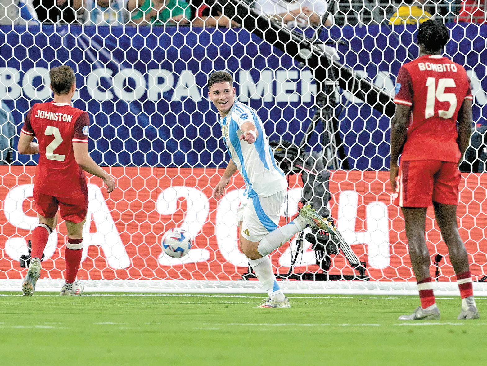 La selección argentina nuevamente disputará el título de la Copa América el domingo 14 de julio en Miami, tras superar en semifinales anoche a Canadá por 2-0. En un partido similar al que disputaron en el arranque de la fase de grupos del torneo, el cuadro dirigido por Lionel Scaloni sacó chapa de campeón mundial y por mayor oficio se hizo dueño de un partido muy entretenido.