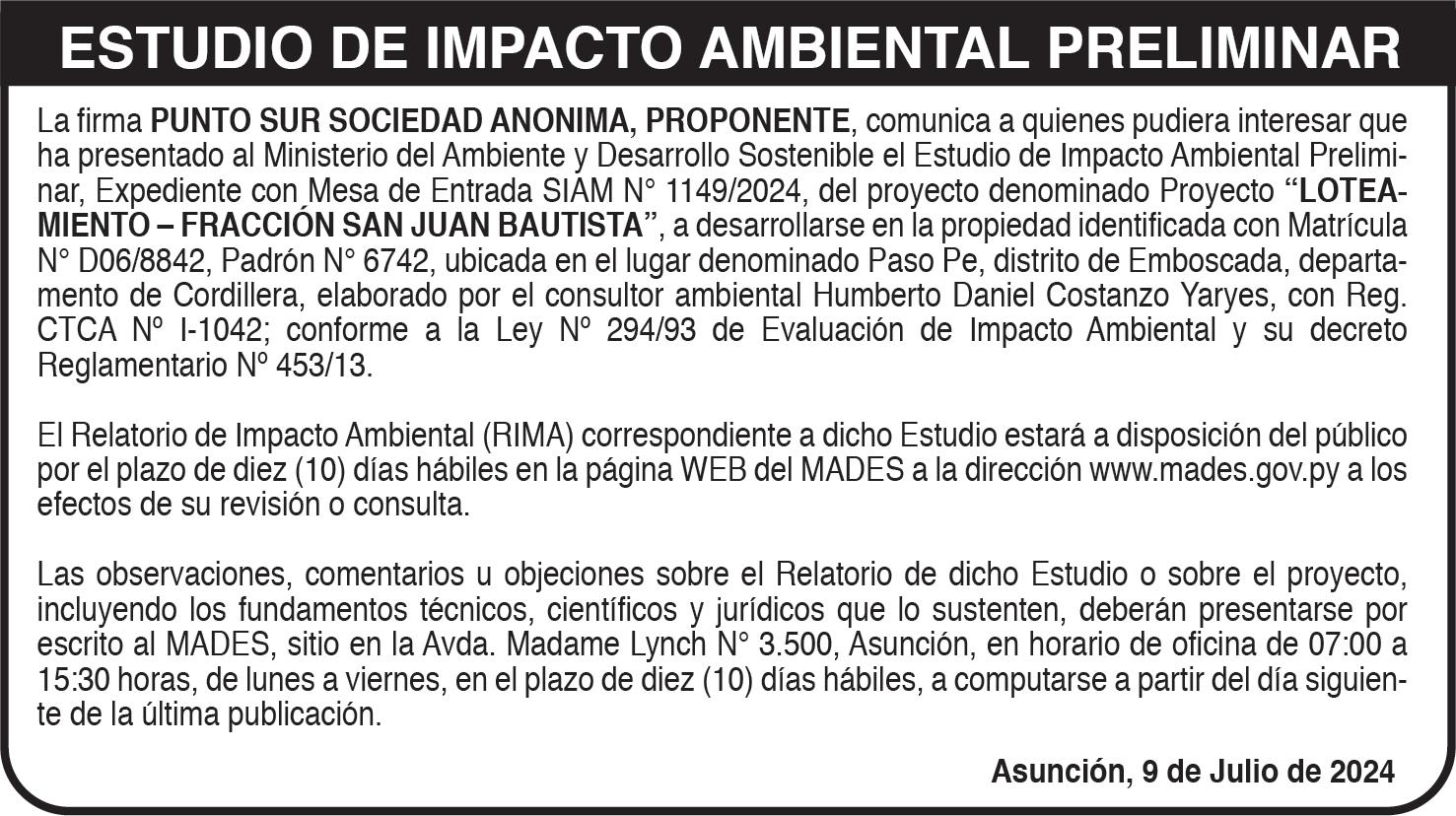 JUEVES 11 DE JULIO DE 2024