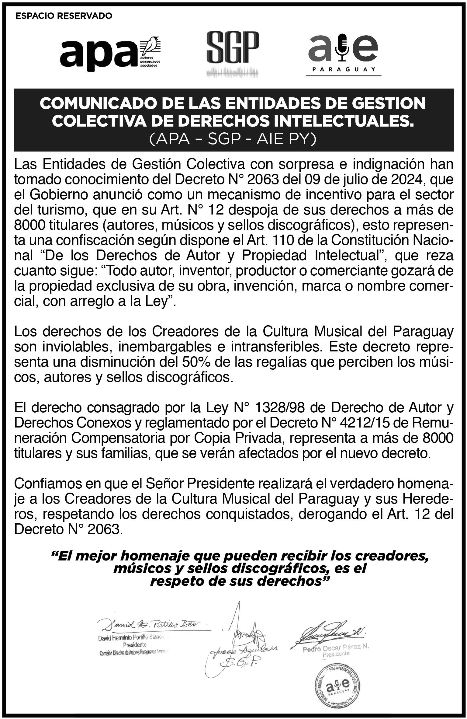 El Gobierno paraguayo expresó su condena contra el atentado al expresidente y candidato republicano Donal Trump, durante un mitin en Pensilvania. La policía reportó dos fallecidos, uno de ellos sería el tirador. Trump fue retirado con rastros de sangre en el rostro. Voceros informaron que estaba a salvo. P. 6