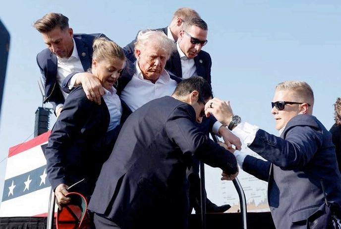 El expresidente estadounidense Donald Trump, candidato republicano a las elecciones de noviembre, fue evacuado de un mitin ayer sábado en el estado de Pensilvania (noreste) con sangre visible en su oreja derecha y tras escucharse aparentes disparos, de acuerdo con periodistas de la AFP. Se reportan dos muertos, el presunto autor de los disparos, y un participante.