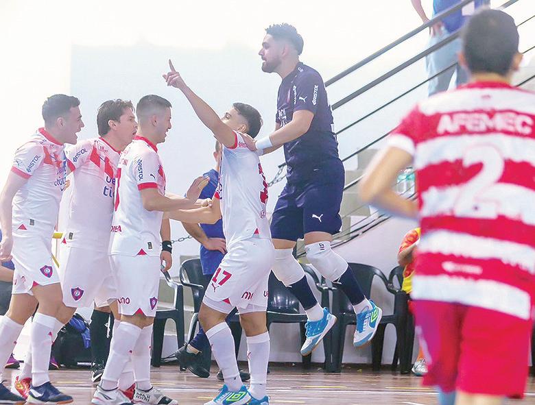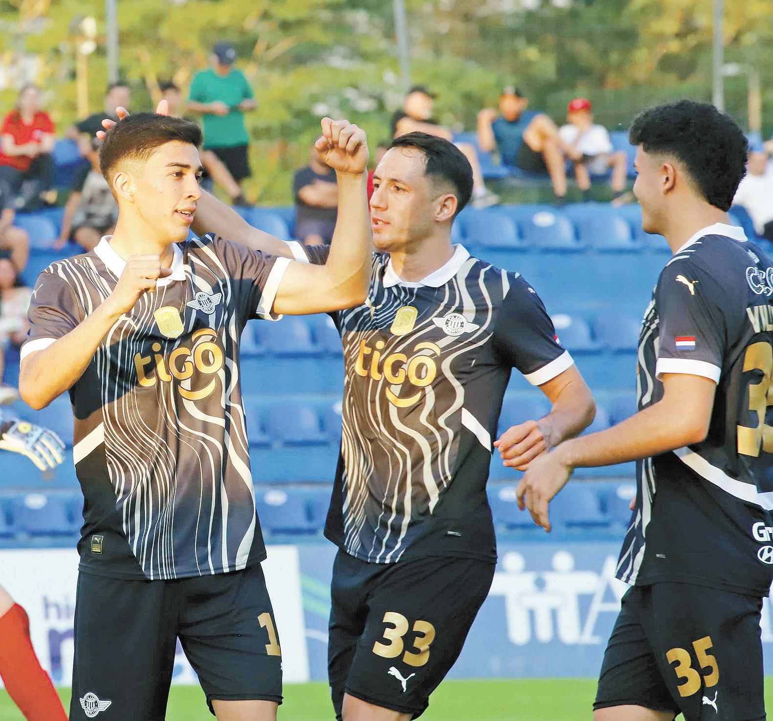 Rubén Lezcano (izq.) marcó el tercero de penal para Libertad y aquí lo festeja con sus compañeros