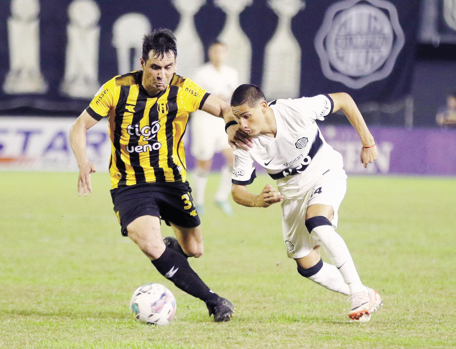 El juvenil Pedro Zarza intenta superar la marca de Daniel Pérez. Sobre el final, Guaraní rescató un empate ante Olimpia