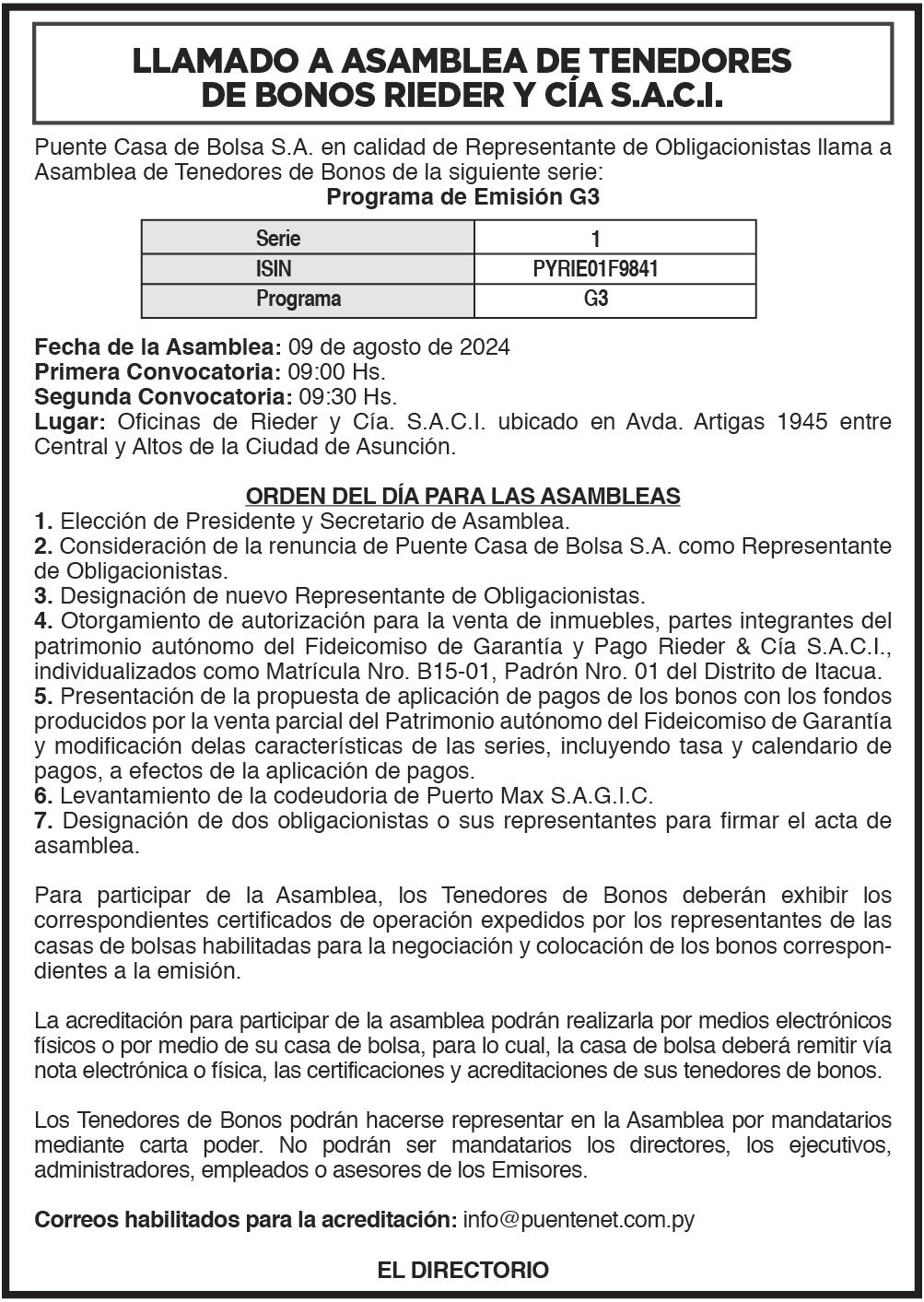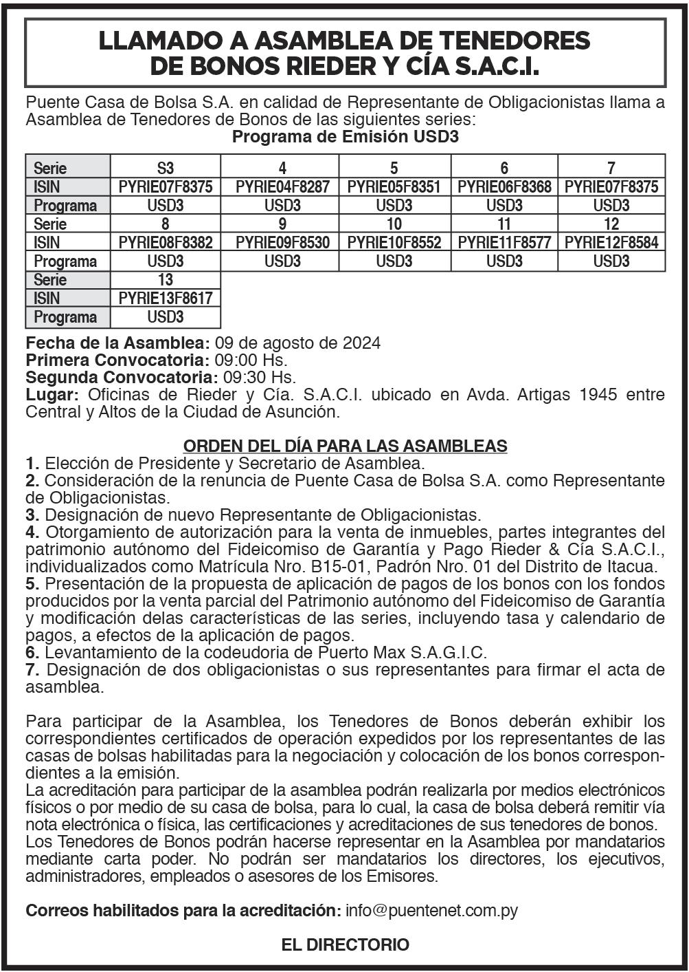 FIRME POSICIÓN ANTE ADVERTENCIAS DE MARSET