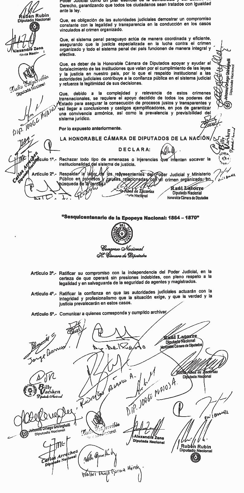 “Condenamos de manera clara las amenazas a jueces y fiscales de parte de prófugos de la Justicia que están siendo investigados y les damos todo nuestro respaldo a los operadores de Justicia. La droga está haciendo estragos en nuestros jóvenes y familias paraguayas. Nuestra mejor respuesta debe ser con toda la fuerza y presencia del Estado a favor de la institucionalidad”, sostuvo Raúl Latorre.