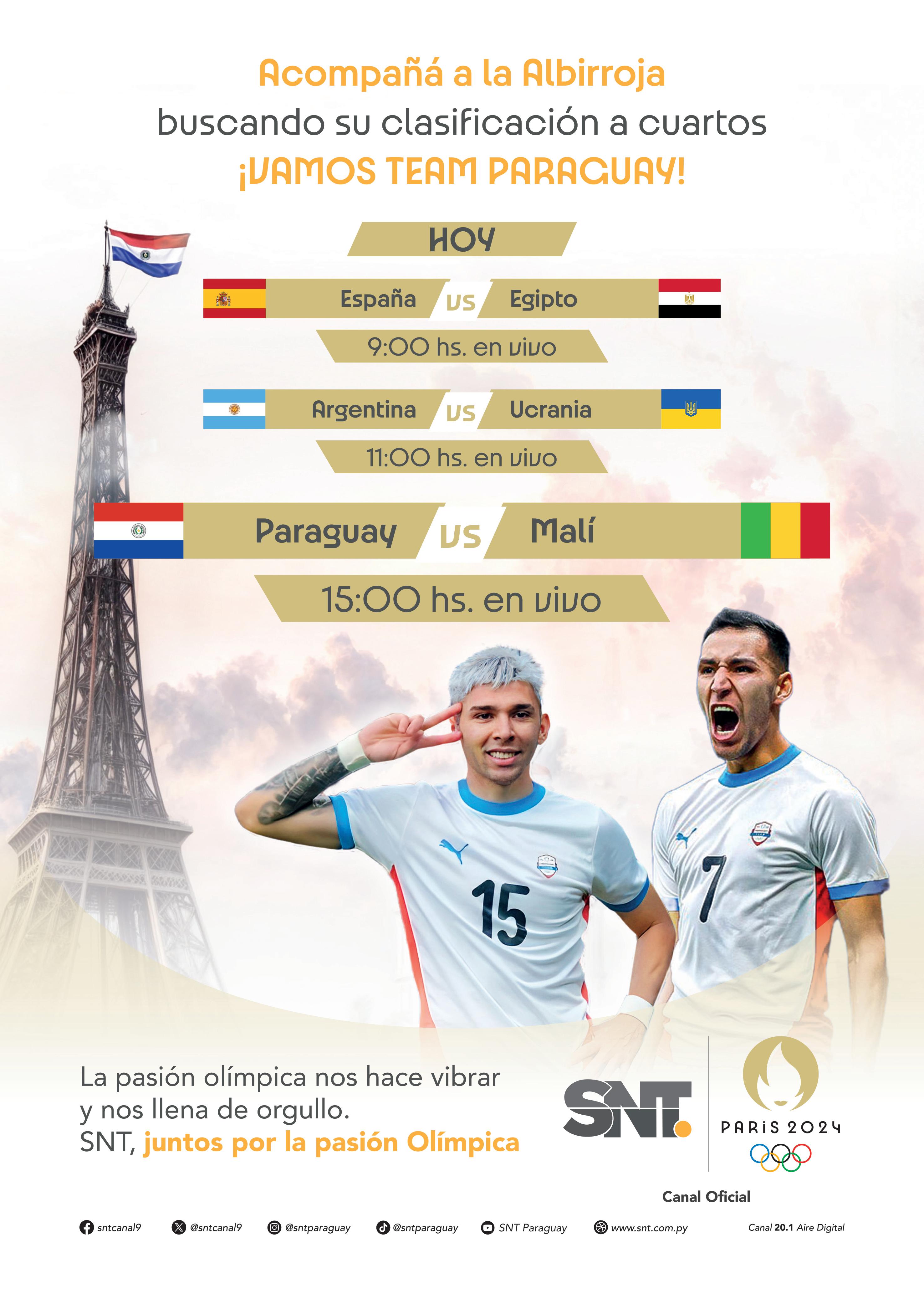 Con una expectativa enorme, la selección paraguaya Sub-23 enfrentará esta tarde (15:00) a Malí en su tercer partido del Grupo D de los Juegos Olímpicos de París 2024.