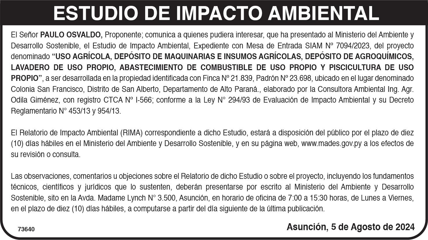 SUCESIÓN. La Juez de Paz del distrito de Minga Porã, de la VI Circunscripción Judicial del Alto Paraná, Abg. Martha Fabiana Acosta Romero, cita y emplaza por 60 días a herederos y acreedores de la Sucesión de PELAGIA NOGUERA para que se presenten ante la Secretaría del Juzgado, si así creyeren a sus derechos. La publicación deberá realizarse en el Diario La Nación por el término de 10 (diez) días. El juicio radica en el Juzgado de Paz de la ciudad de Minga Porã, Secretaría a cargo del Abg. José Javier Arza. Minga Porã, 26 de julio de 2024.73613/12/08.-