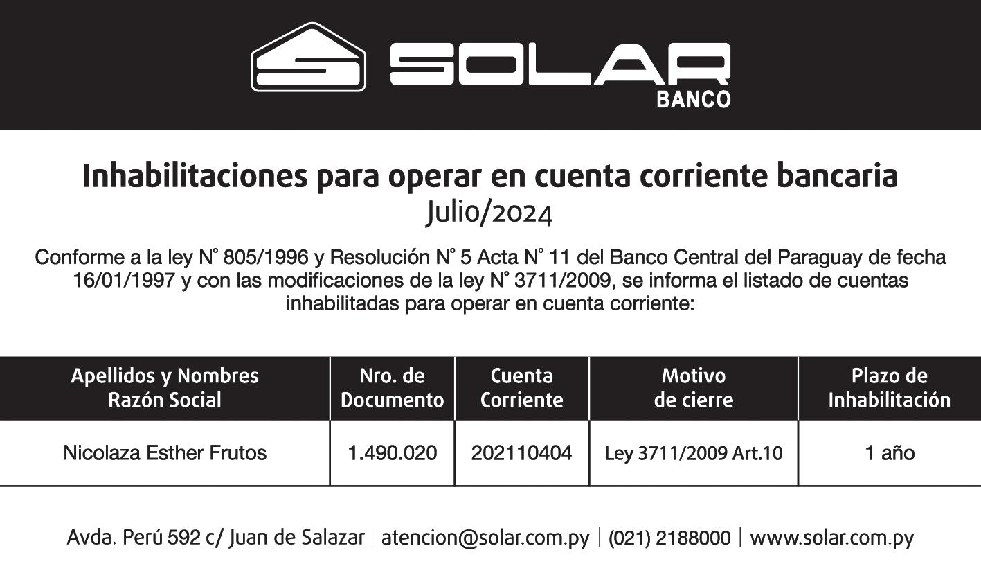 El banco Atlas SA, propiedad de la familia Zuccolillo, tiene tiempo hasta hoy martes para poder remitir una copia autenticada de manuales de prevención de lavado de activos al Ministerio Público, que lo investiga por el delito de lavado de dinero en el caso que involucra a Nicolás Leoz y al citado ente bancario.