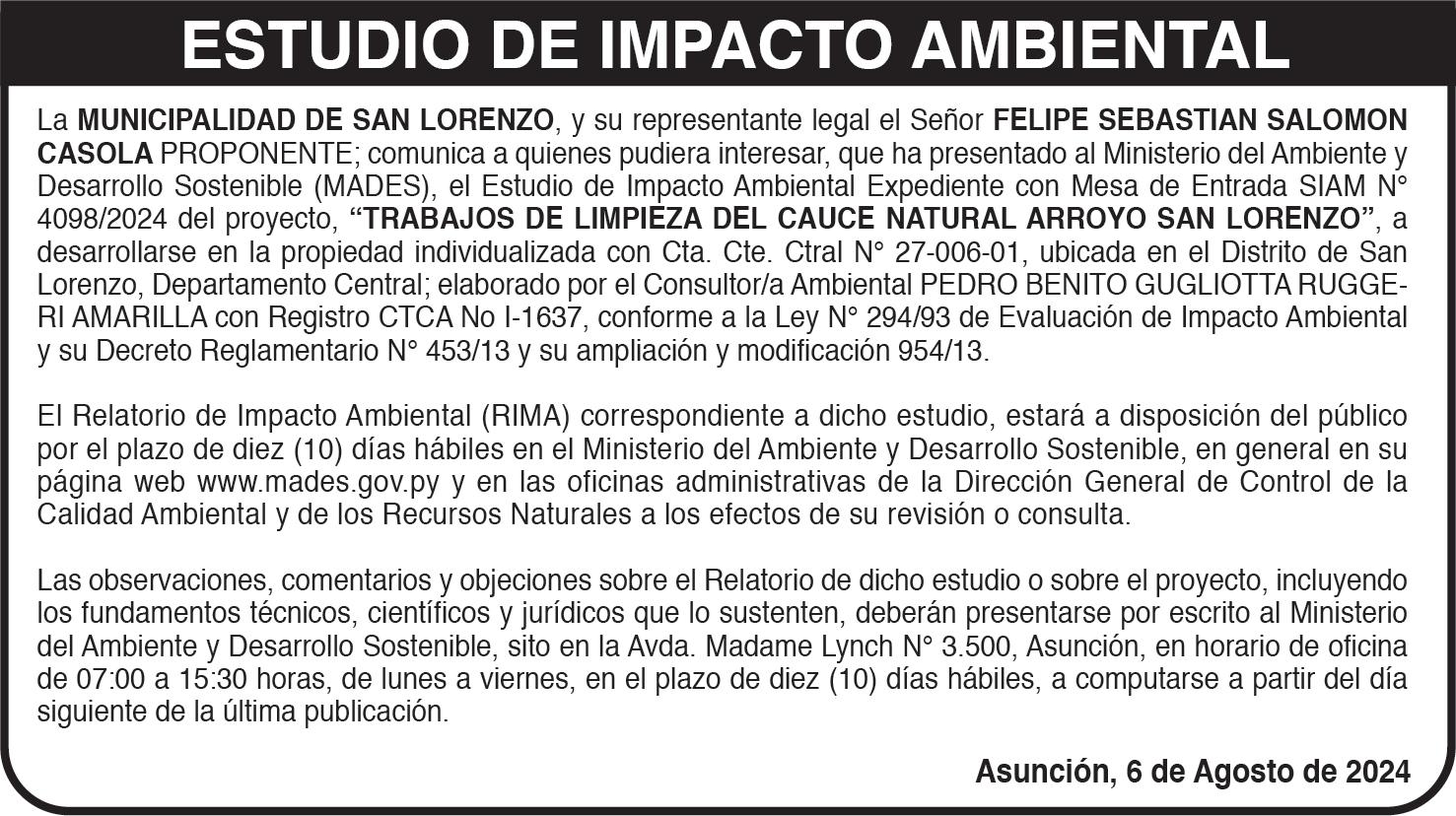 del consorcio Boquerón y el monto adjudicado fue de G. 413.888 millones.