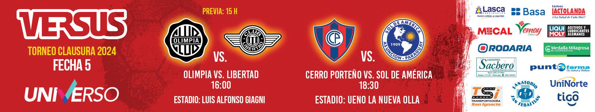 La continuidad de la fecha 5 del torneo Clausura anuncia para hoy dos partidazos, donde estarán en acción los grandes, Olimpia y Cerro Porteño. El partido excluyente será sin dudas el que anima-