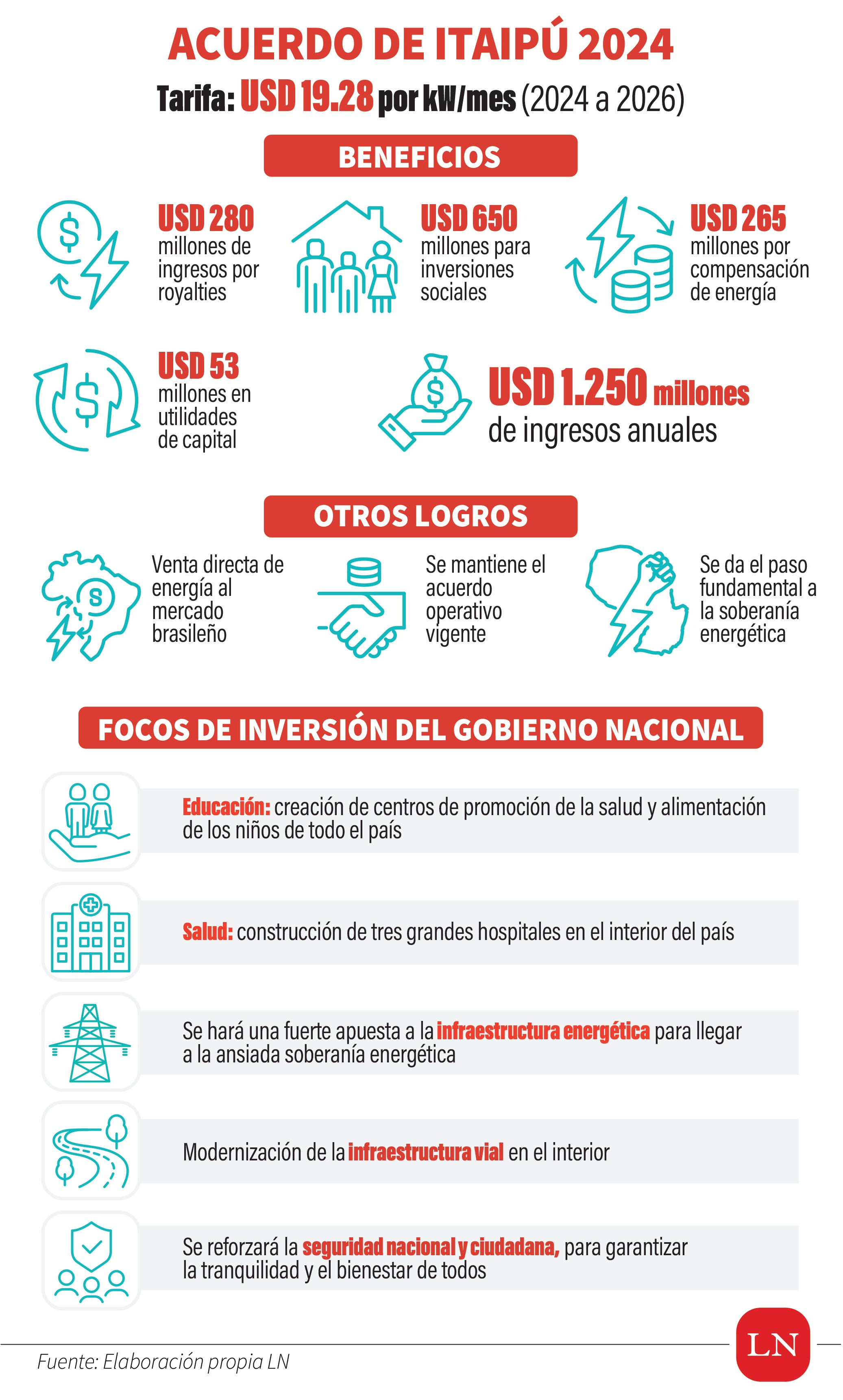 Uno de los logros más destacados del gobierno de Santiago Peña fue la exitosa negociación de la tarifa de Itaipú. Con este acuerdo, Paraguay recibirá USD 1.250 millones al año.