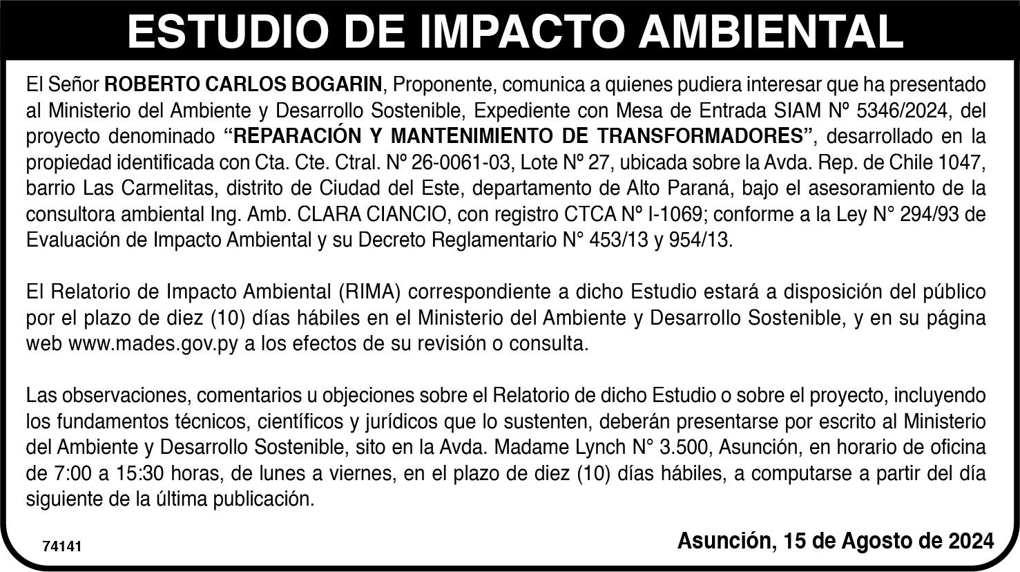 JUEVES 15 DE AGOSTO DE 2024