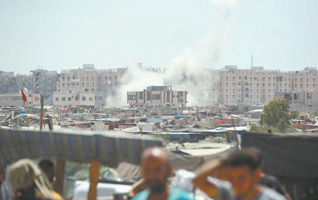 Más de 30 bomberos forestales trabajan arduamente para sofocar el fuego en el lugar histórico.