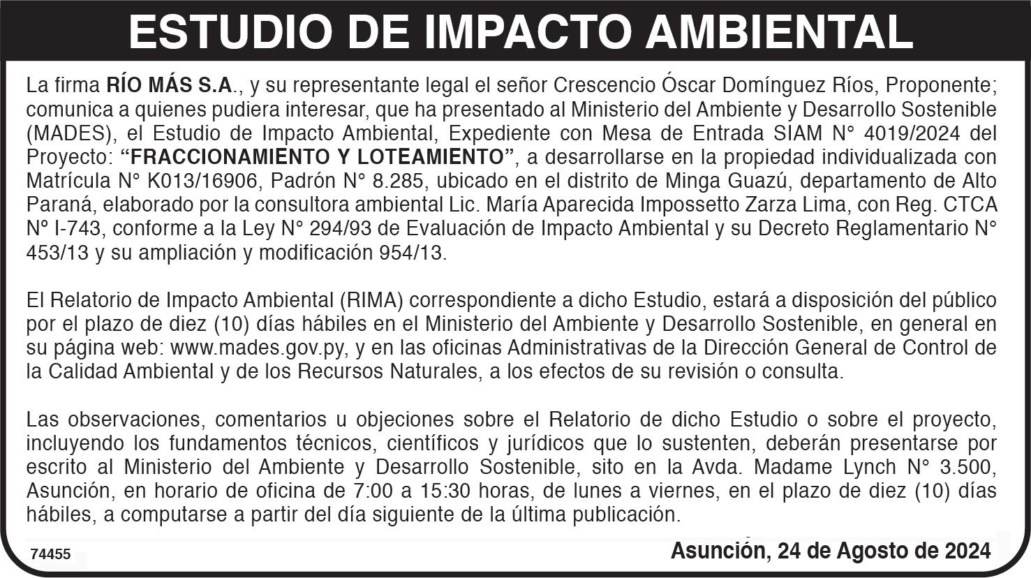 “Con mucho orgullo y mucha humildad podemos decir misión cumplida, hoy 23 de agosto está publicado el Pliego de Bases y Condiciones (PBC) para la fase B de Pilar. Son USD 50 millones, es uno de los proyectos