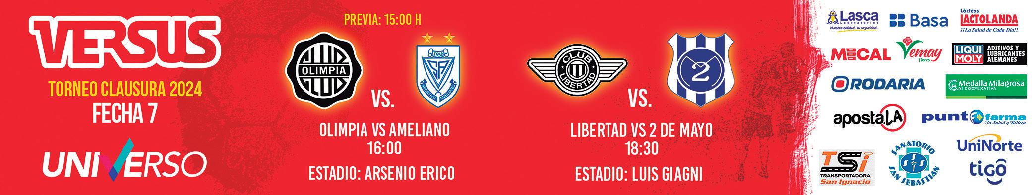 Olimpia recibe a Ameliano y el líder 2 de Mayo visita a Libertad. Dos partidazos y puntos valiosos.
