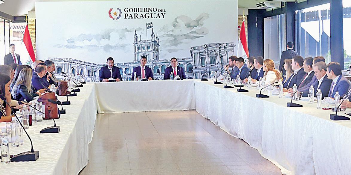 De la reunión con los legisladores participaron el presidente Santiago Peña, el vicepresidente Pedro Alliana y el titular del Partido Colorado, Horacio Cartes