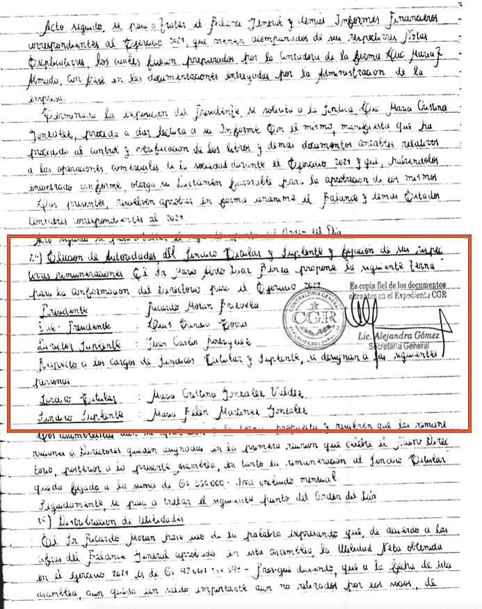 En el ejercicio 2020, la empresa Aldia destinó unos G. 8 000 millones a reservas operativas, según consta en esta acta