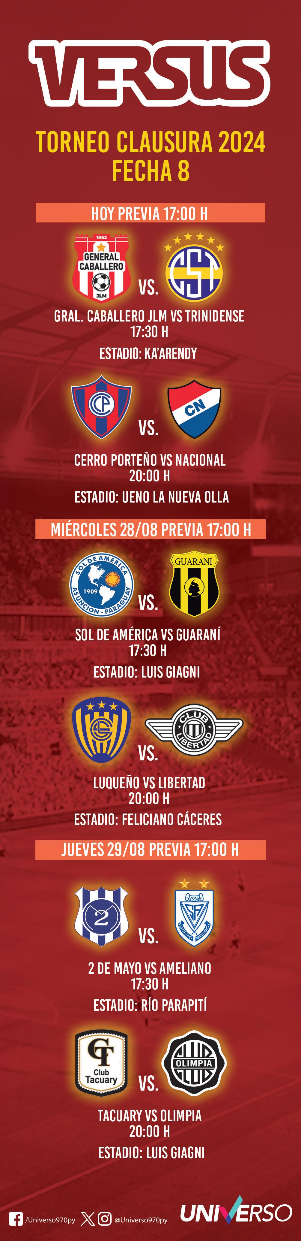 dio Ka’arendy de Juan León Mallorquín, se enfrentan General Caballero y el Sportivo Trinidense, que pelean por mejorar el promedio para evitar el temido descenso de categoría. De los dos, General Caballero está más apremiado, ya que es penúltimo en el promedio y por ahora está en zona roja de descenso.
