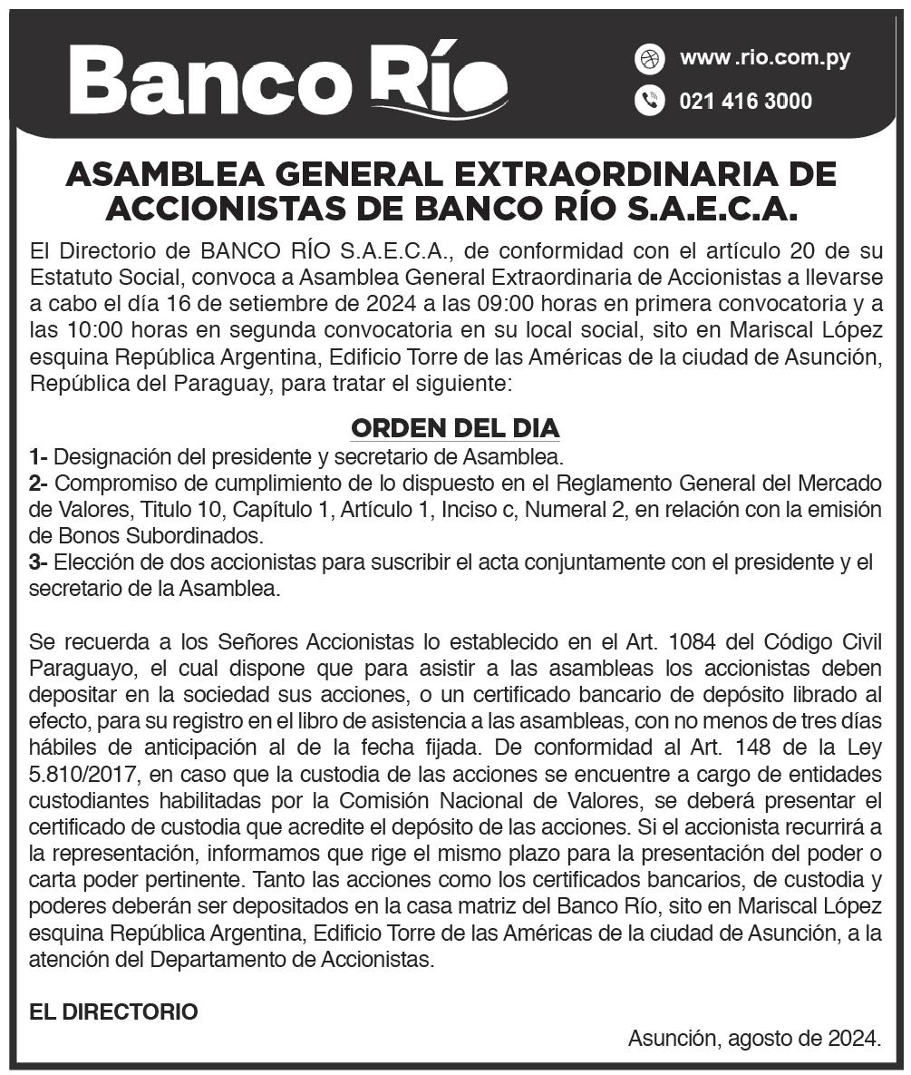 rribia con aporte en efectivo de G. 900 millones.