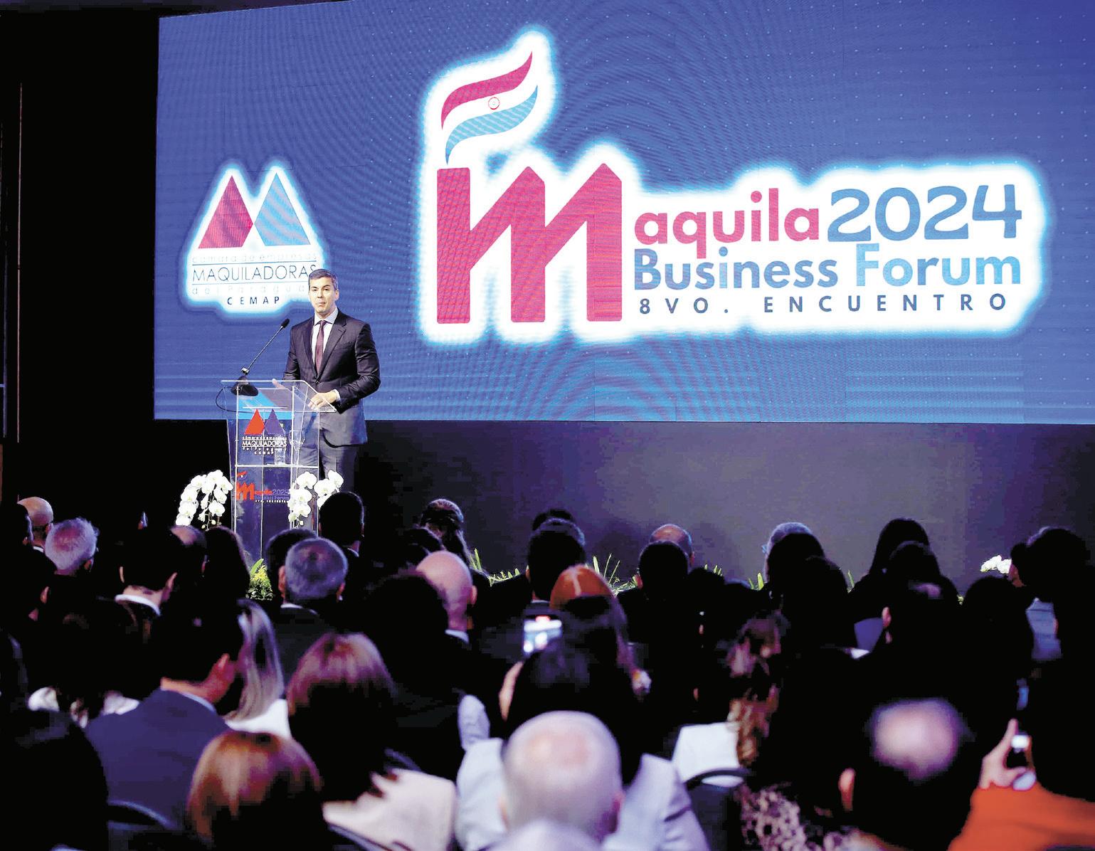 El presidente Santiago Peña subrayó que la principal política social para el desarrollo de un país es el empleo, y esa es la apuesta de su gobierno. Las expresiones del mandatario se dieron en el marco de la Apertura de la 8ª Edición del Maquila Business Forum 2024. “Es lo que le da seguridad, libertad, y es lo que estamos apostando, y este régimen de maquila forma parte del abanico de opciones que tiene Paraguay”, expresó el mandatario. P. 11