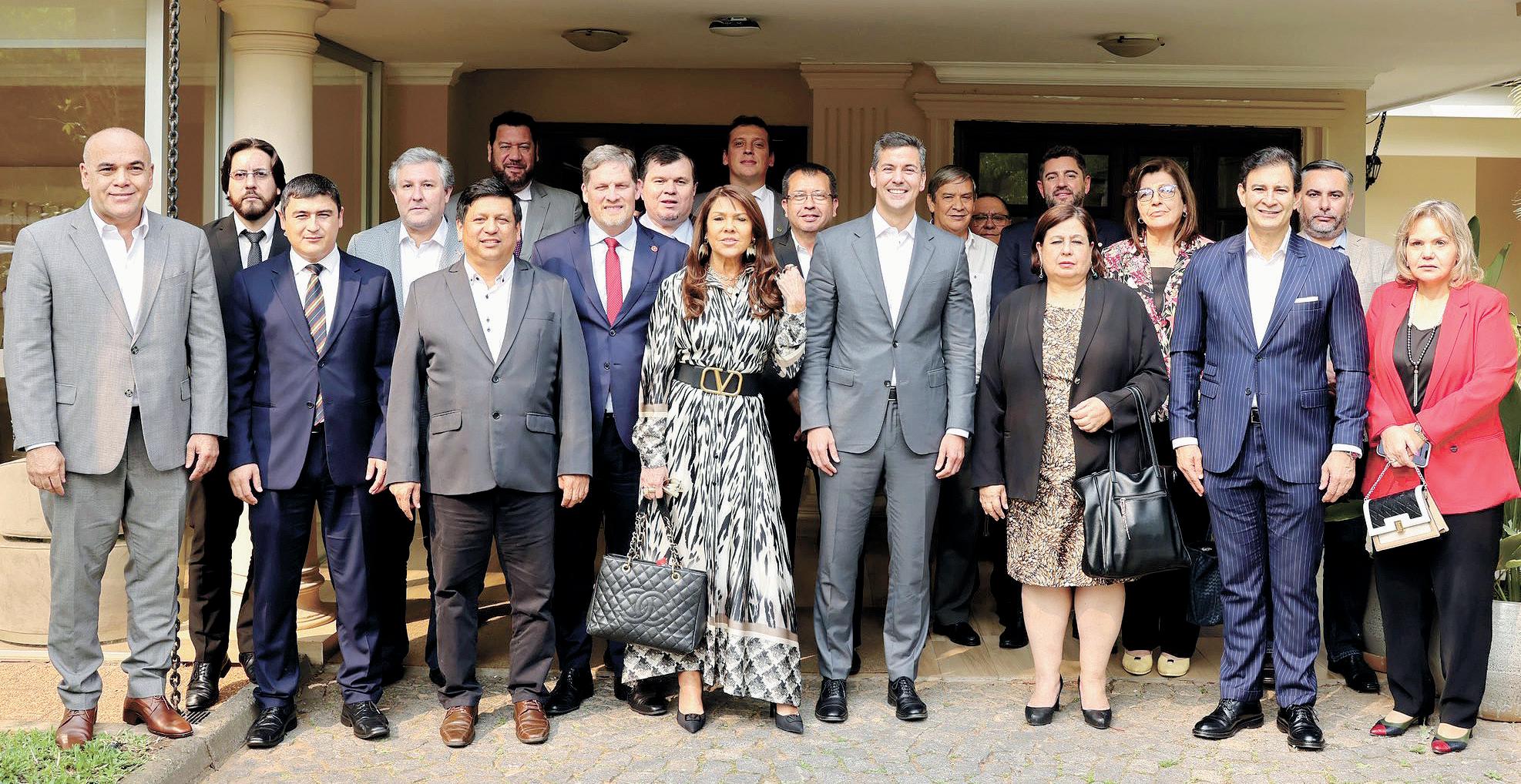 Senadores de la oposición y del oficialismo se reunieron ayer con el presidente Santiago Peña y el vicepresidente Pedro Alliana en Mburuvicha Róga con el fin de generar diálogo y trabajar la hoja de ruta del Gobierno.