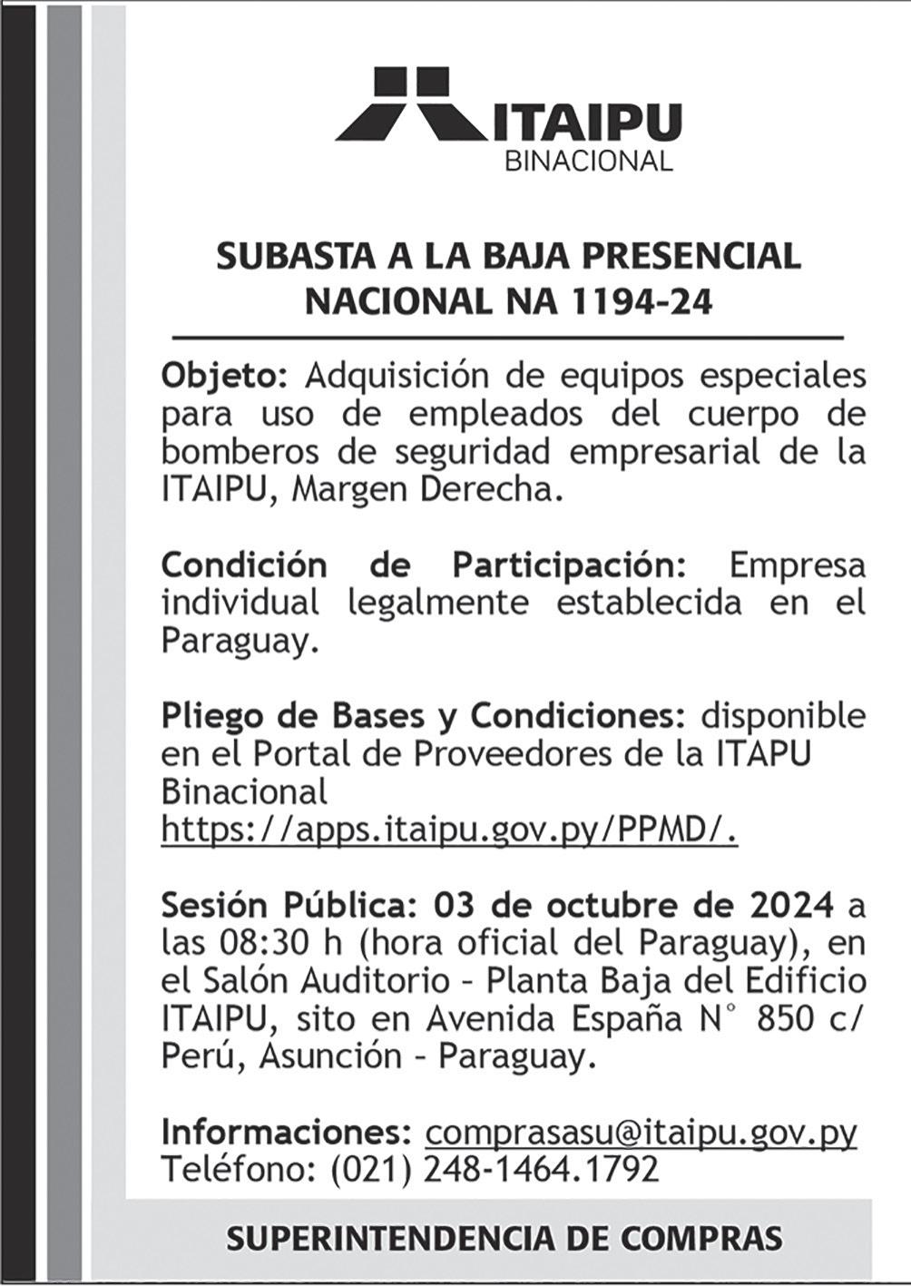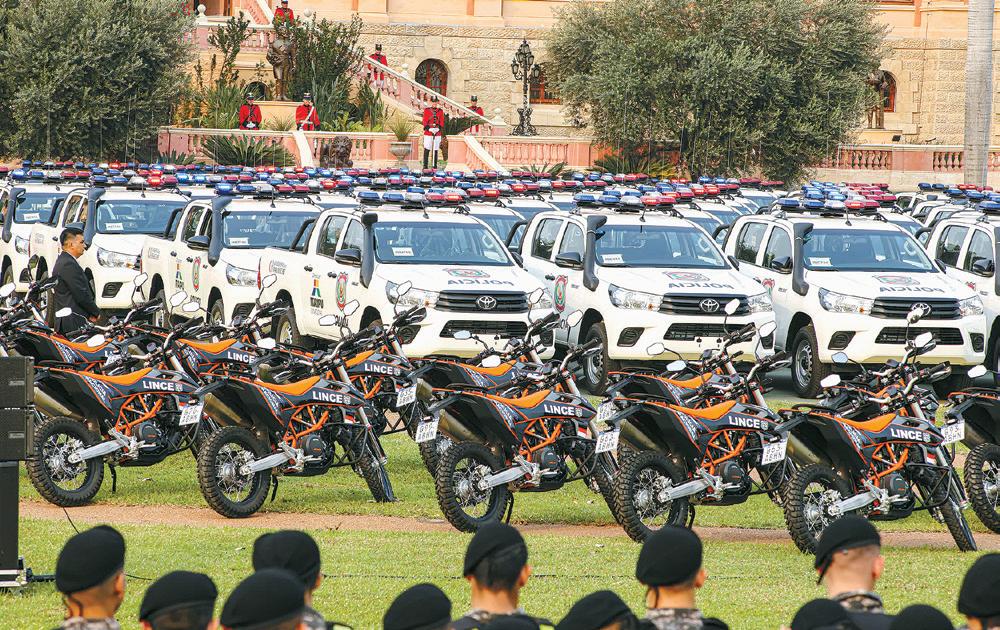 El Gobierno, a través de Itaipú Binacional, realizó la entrega a la Policía Nacional del primer lote de 250 patrulleras, 100 motocicletas y 1.500 chalecos antibalas, que representa una inversión de USD 12 millones. El presidente Santiago Peña participó del acto que se realizó ayer en la explanada del Palacio de López, remarcando la decidida lucha contra los grupos criminales al fortalecer a las fuerzas de seguridad.