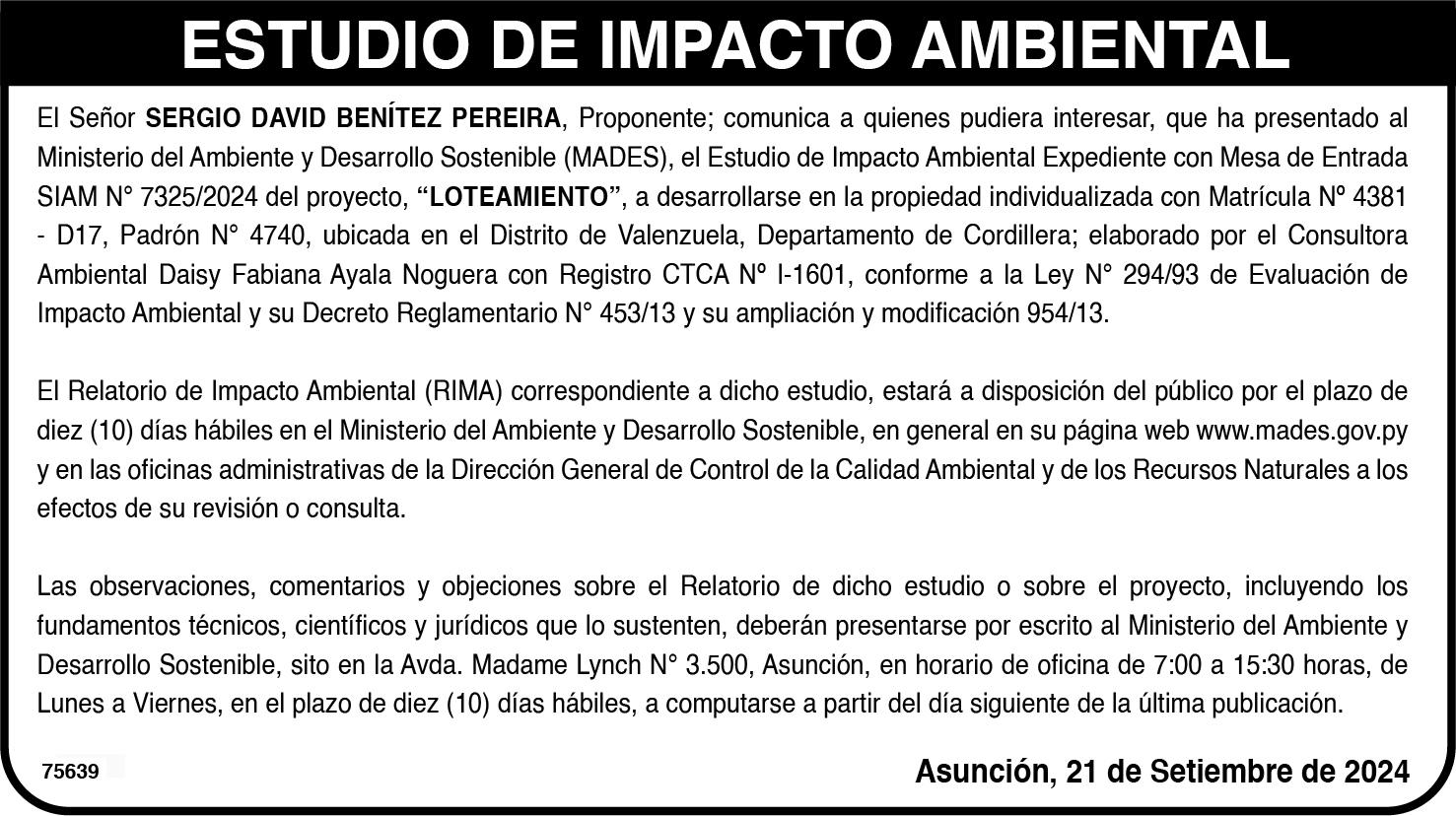 efectuara el 29 de diciembre de 2023, con publicaciones en el diario Abc Color, destacando las medidas cautelares que pesan sobre el inmueble.