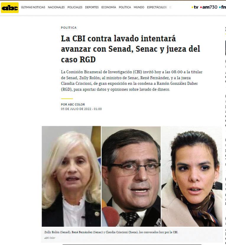 las extensas notas atacando no solo a la CBI de lavado de dinero, sino a sus componentes y armando el discurso de la supuesta “persecución” a la “prensa libre” que dice representar de forma casi exclusiva el diario de la calle Yegros.