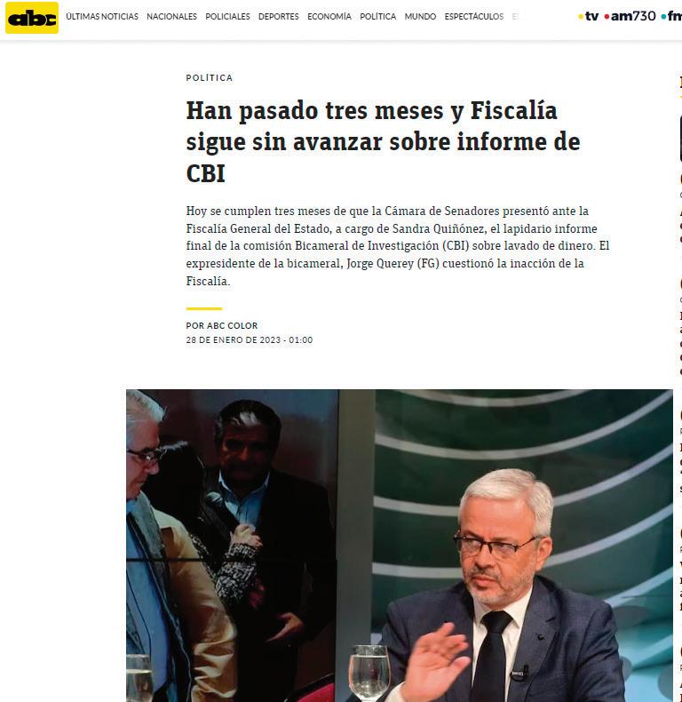 No hace falta más que una revisión rápida de la web del multimedio para toparse con numerosos artículos, videos y entrevistas de audios en los que resaltaban las “revelaciones” de la CBI y los constantes pedidos de que la Fiscalía actúe en base a esos informes. Claramente, los documentos apuntaban a varios de los enemigos políticos del grupo Zuccolillo, entre ellos el expresidente Horacio Cartes.