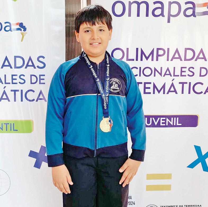 Maximiliano Gauto Florentín, alumno del colegio María Auxiliadora de San Lorenzo, obtuvo la medalla de oro en la categoría infantil, 4to. grado, en las Olimpiadas Nacionales de Matemáticas, organizada por la Organización Multidisciplinaria de Apoyo a Profesores y Alumnos (Omapa). Es la tercera participación consecutiva del niño estudiante, en las dos ediciones anteriores obtuvo medalla de plata, por lo que sus profesores y guías lo consideran como un alumno brillante, con un futuro extraordinario para el país. La premiación se realizó el sábado en la ciudad de San Lorenzo, en la sede de Bienestar Estudiantil del Rectorado de la UNA.
