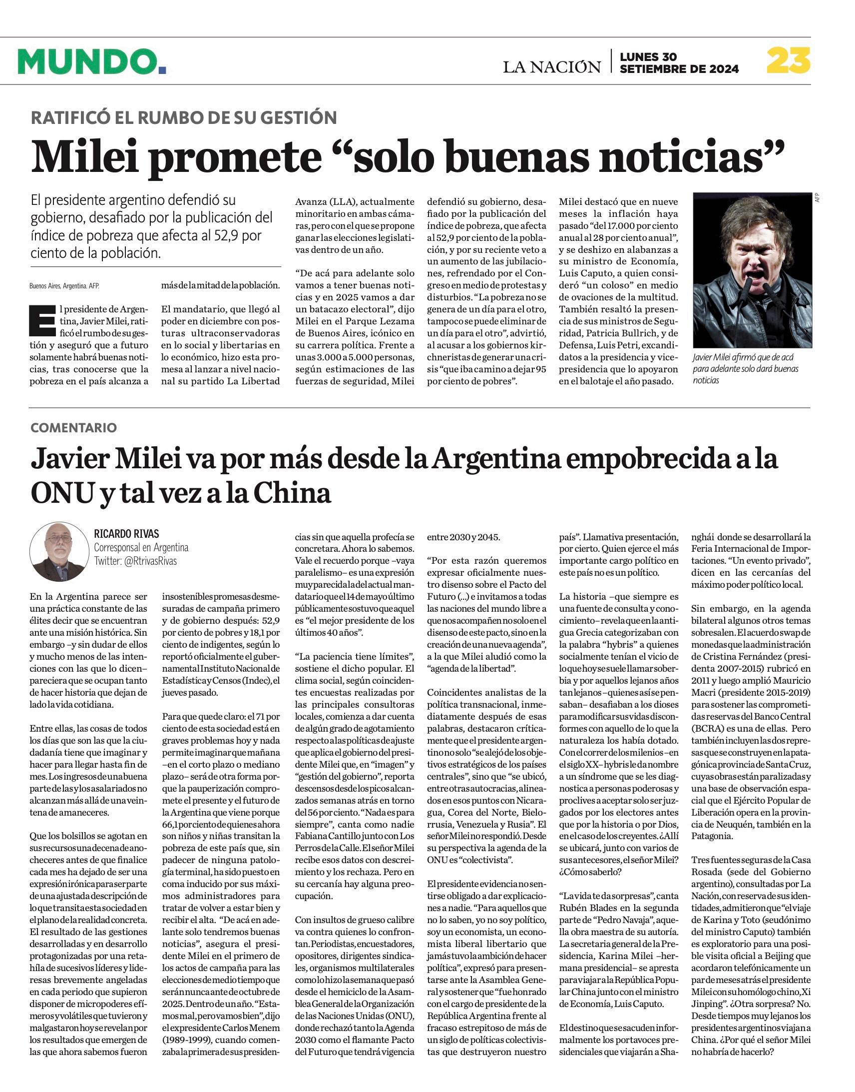 teniendo en cuenta que actualmente se encuentra participando del 79.° periodo de sesiones de la Asamblea General de las Naciones Unidas (ONU), desarrollado en Nueva York.