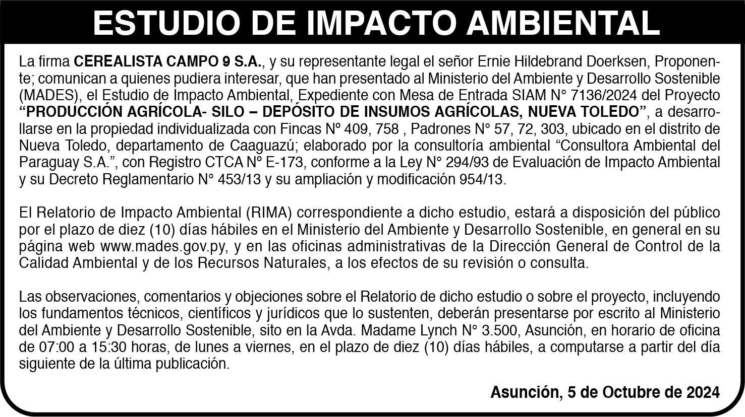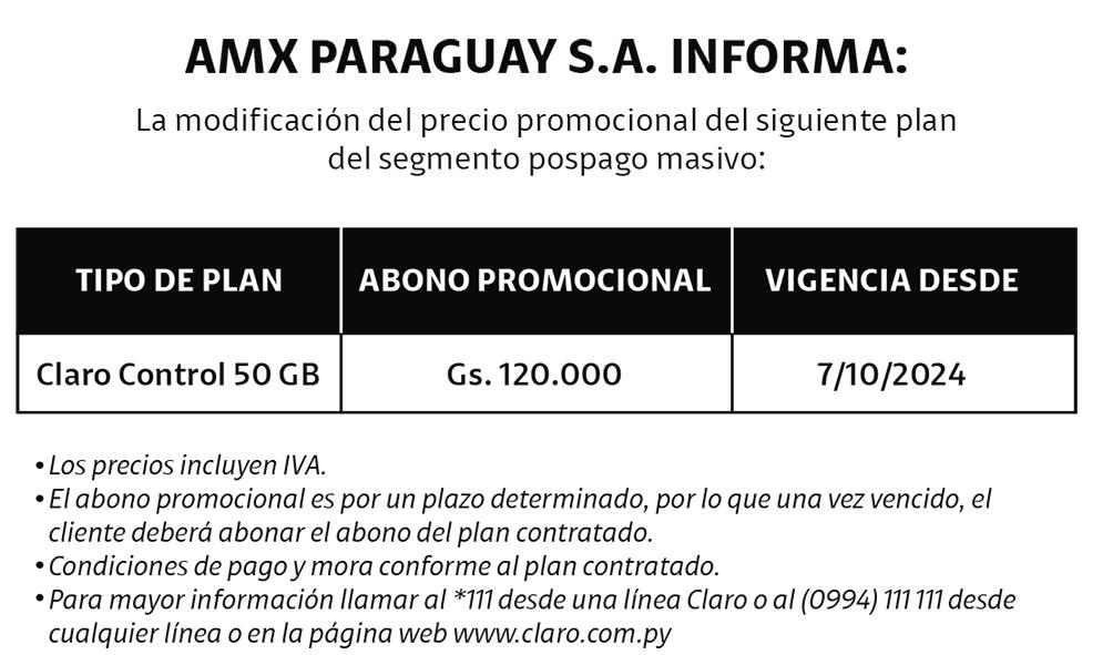 • Director-Gerente General: José María Agüero Halley • Director-Gerente Adm. Financiero: Diego Balmelli Forno TEL: 959-3000 MAIL: DIRECCION@NACIONMEDIA.COM | WWW.LANACION.COM.PY LA NACIÓN es una publicación de Gráfica y Editorial Intersudamericana SA. Dirección: Avda. Zavala Cué e/ 2da. y 3ra. - Fernando de la Mora, Zona Sur. Luque: Bertoni c/ Cerro Corá Nº 34 3er. Barrio Luque. Telf: (0982) 558-670 San Lorenzo: 10 de Agosto 564 casi España. Telf: (0961) 783-839 Concepción: Brasil 462 c/Cerro Corá Telf: (0971) 811-295 Encarnación: 25 de Mayo 333 casi Independencia Nacional. Telf: (0985) 714-745 San Ignacio, Misiones: Ruta PY 1 Km 223 (Parador Piringo) Telf: (0975) 630-222 Coronel Oviedo: Mcal. Estigarribia c/ Tuyutí. Teléfono: (0521) 203-524 Ciudad del Este: Curupayty e/ Adrián Jara. Teléfono: (061) 510-930 Suscripciones: 959-3190 Fonoavisos: 959-3161.